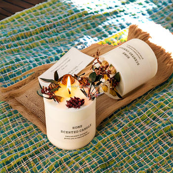 Candele profumate di lusso in barattolo di vetro con coperchio alla moda fiori secchi aromaterapia cera di soia all'ingrosso candele profumate